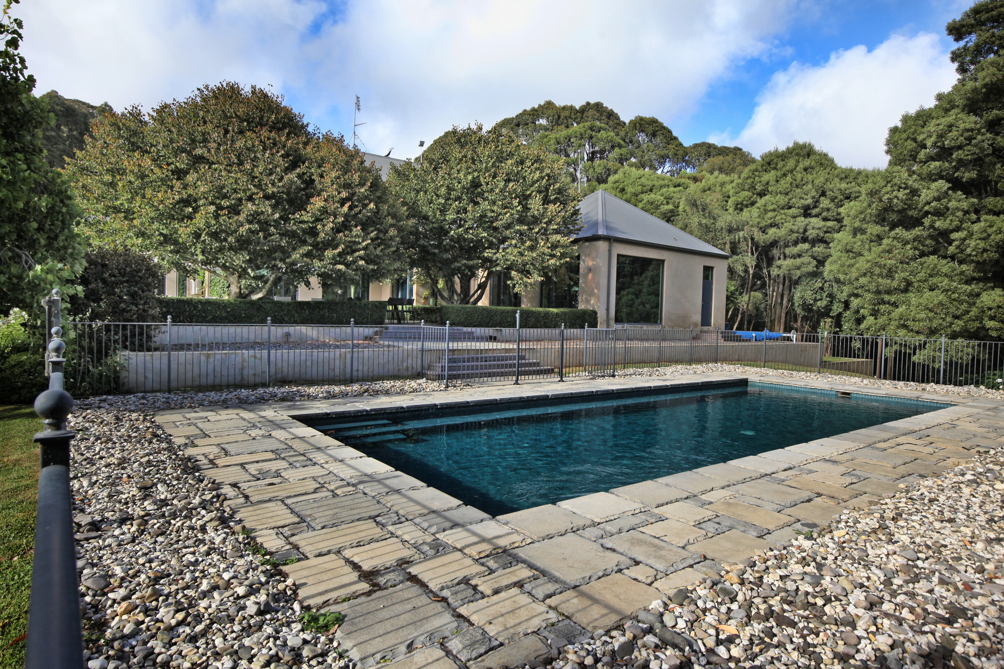 Elegant & contemporary, the main home is north facing and exudes grace & style. Comprising 6 spacious bedrooms (main & guest with ensuite & walk-in robe) and multiple formal & relaxed living zones, the Viridian E-Vantage glass windows & doors that invite the natural light in, while keeping the elements out. The newly renovated kitchen includes a Liebherr integrated double refrigerator, an integrated Miele dishwasher and an Ilve gas stove, rangehood & electric oven feature. The kitchen is an entertainer’s dream with a main kitchen, a separate butler’s prep area and a walk-in-pantry. There are two dining areas next to the kitchen with options for casual family and/or more formal dining options. Adjacent to the kitchen there is an expansive outdoor dining/entertaining space shaded under two beautiful, mature linden trees. The Cheminées Philippe fireplace in the main lounge sits atop a custom designed concrete hearth and provides abundant wood storage. Hardwood flooring provided warmth and comfort in all the main living areas and the main bedroom with luxury New Zealand wool carpeting in the bedrooms.