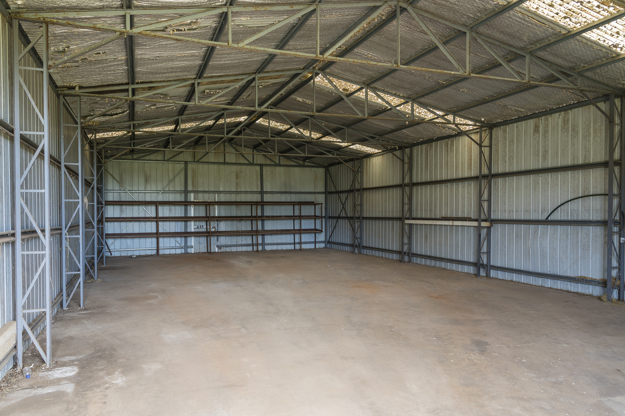 • 25 x 16m industrial sized shed with concrete floor, 3 phase power and built in 3 phase compressor • 40ft shipping container – for extra storage