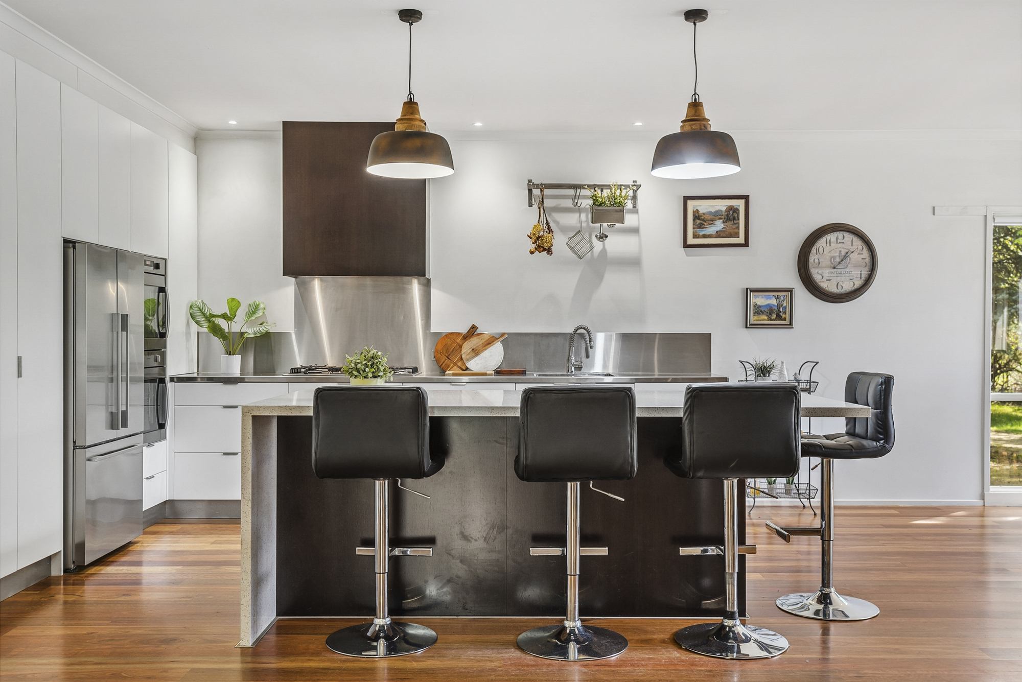 • Open plan kitchen, dining and family room overlooking the lake and gardens • Beautifully renovated kitchen with marble benchtops and 900mm gas stove with electric oven • Solid fuel heater, 2 gas hot water systems • Town water