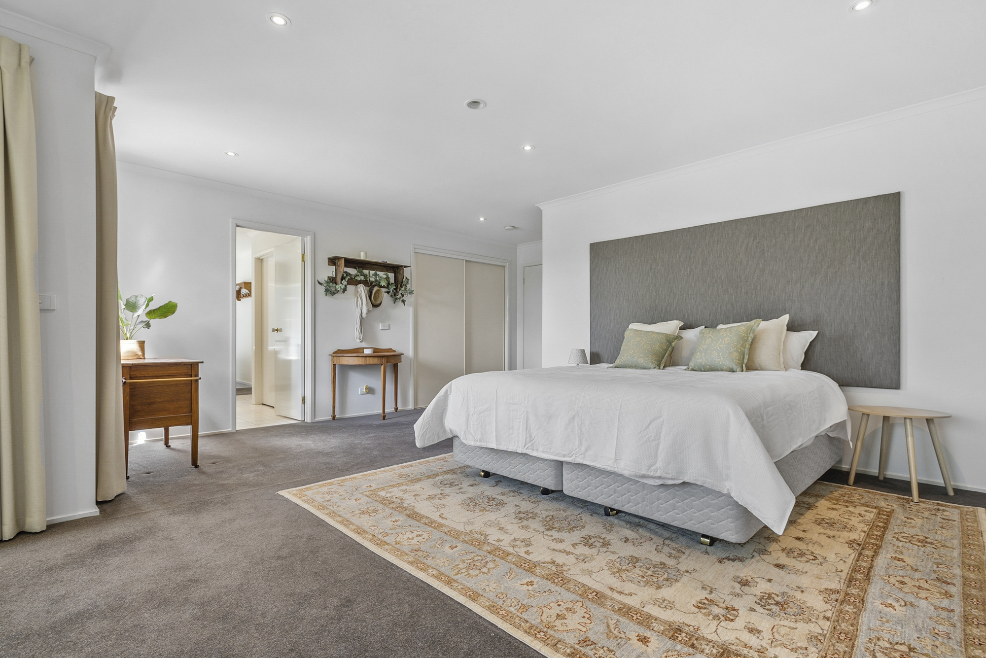 • 5 Bedrooms, each with their own ensuite and reverse cycle heating/air conditioning • A grand style master bedroom, with bay windows overlooking the lake and gardens, spacious ensuite, and enormous dressing room (WIR) with built in laundry shoot • Central family bathroom upstairs