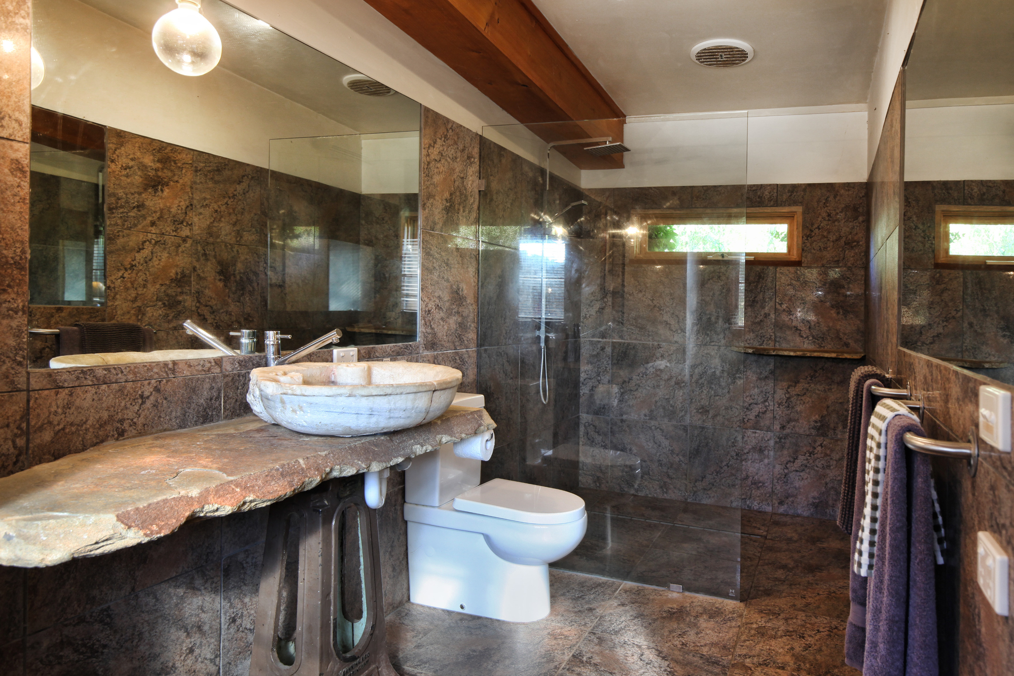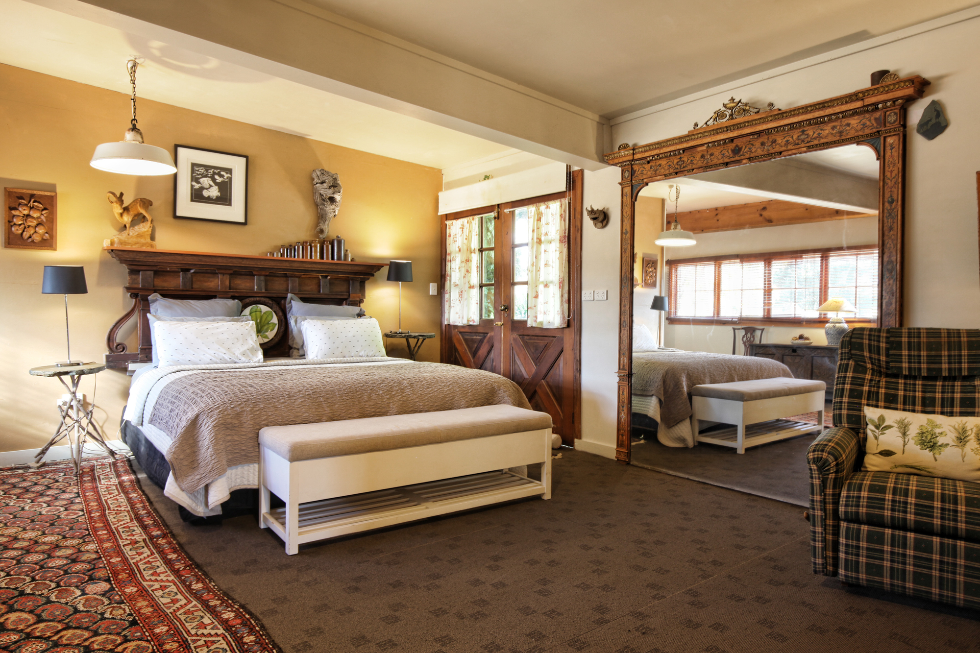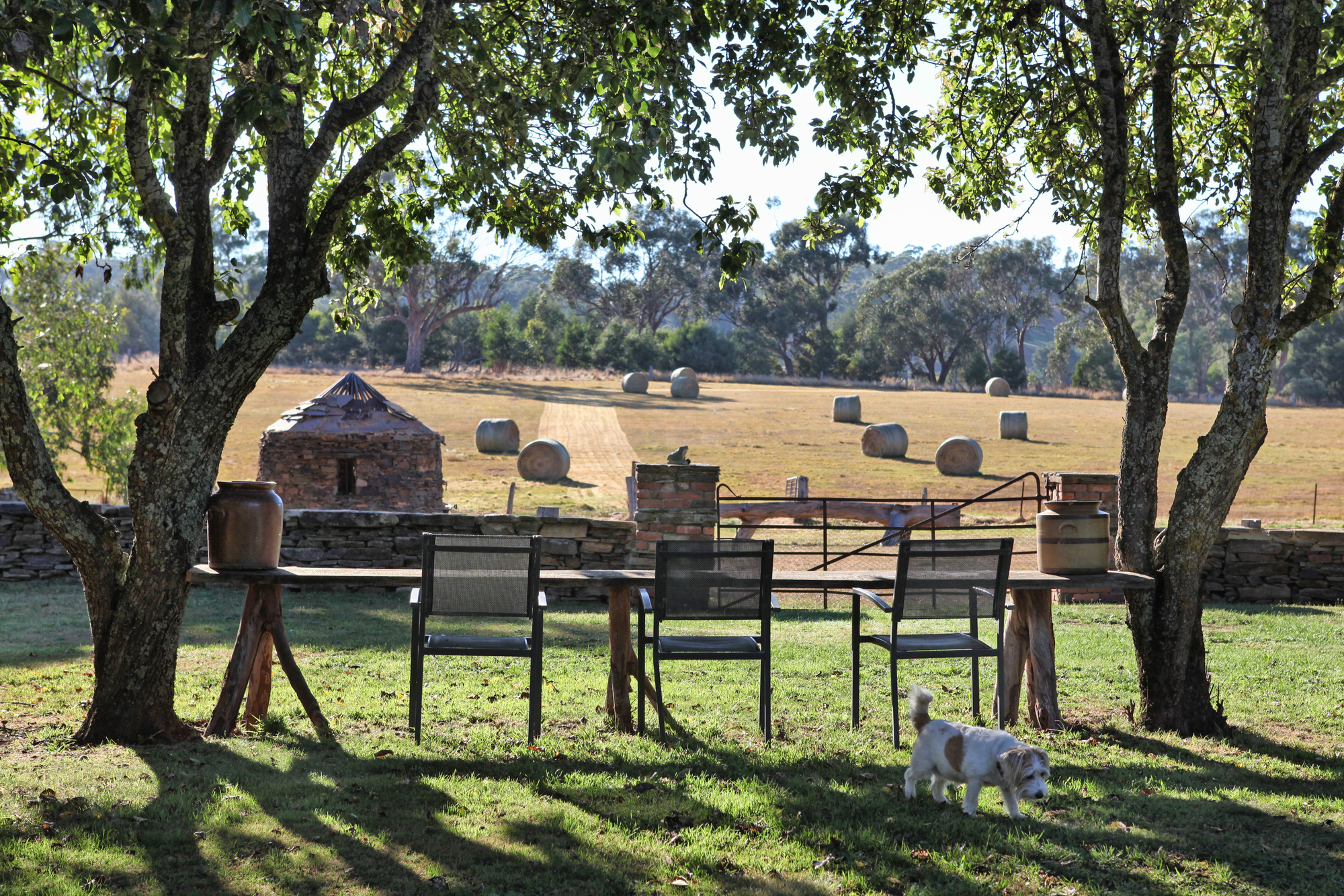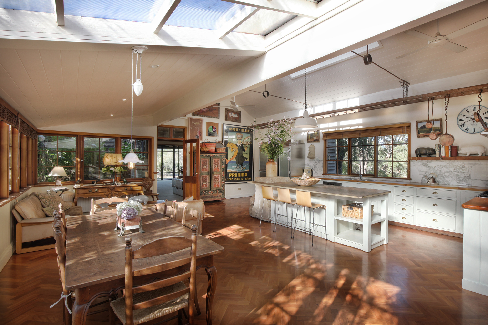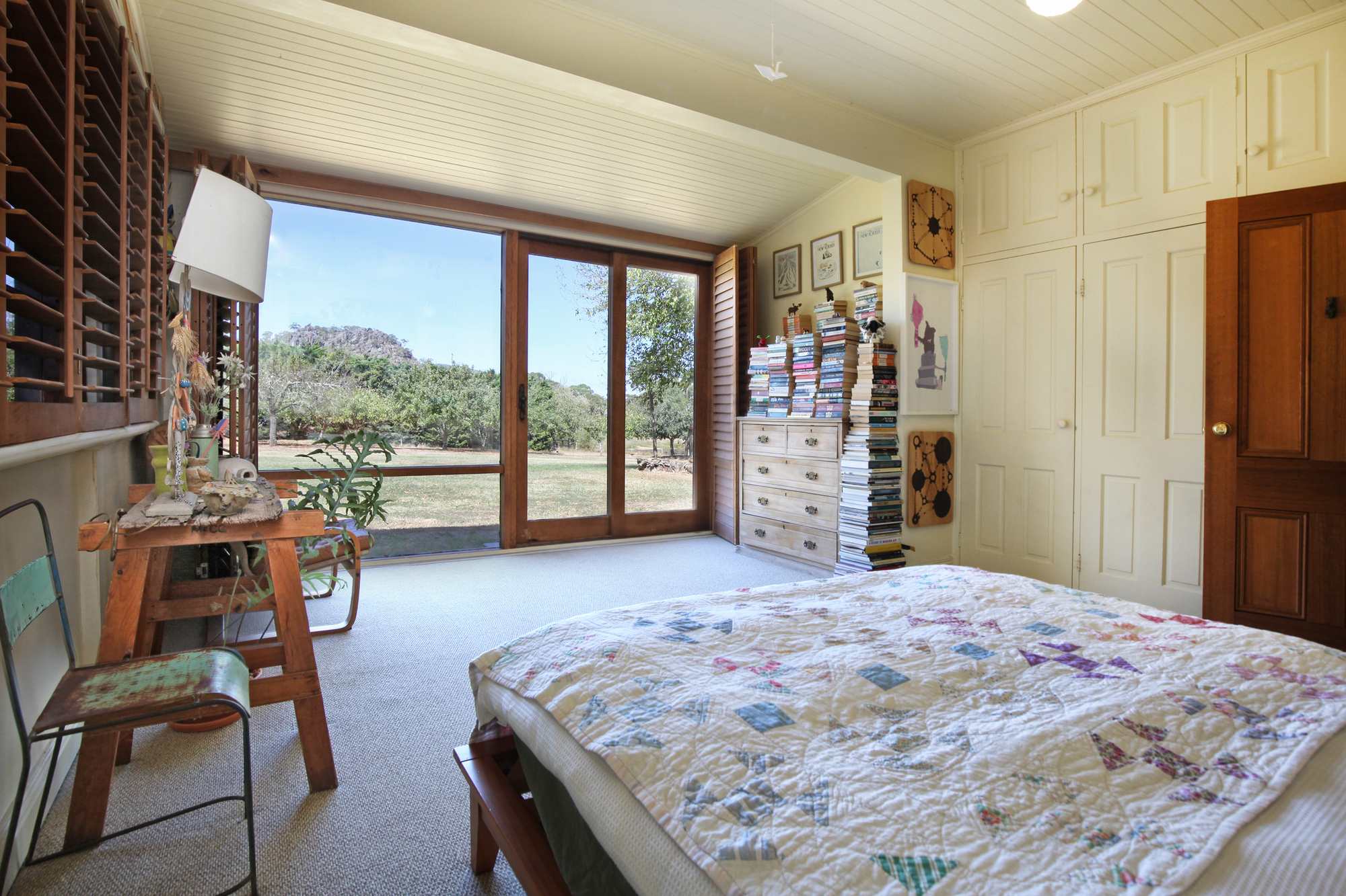 Inside, the light filled residence exudes space and comfort with herringbone parquetry flooring, dado walls and cove ceilings. Floor to ceiling windows frame panoramic views of Hanging Rock. Hydronic heating in the main house and a solid fuel heater in the guest wing ensure year round comfort.