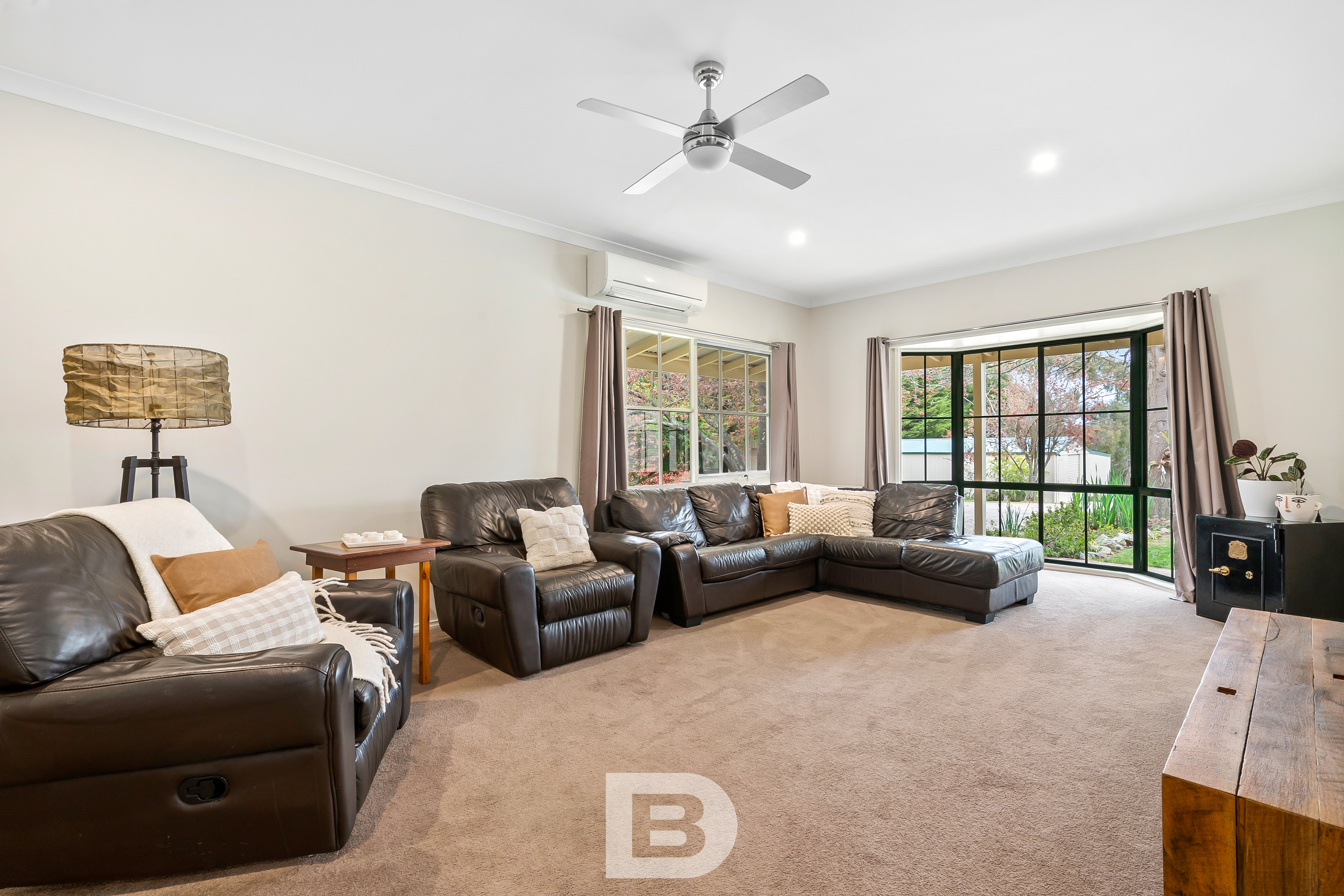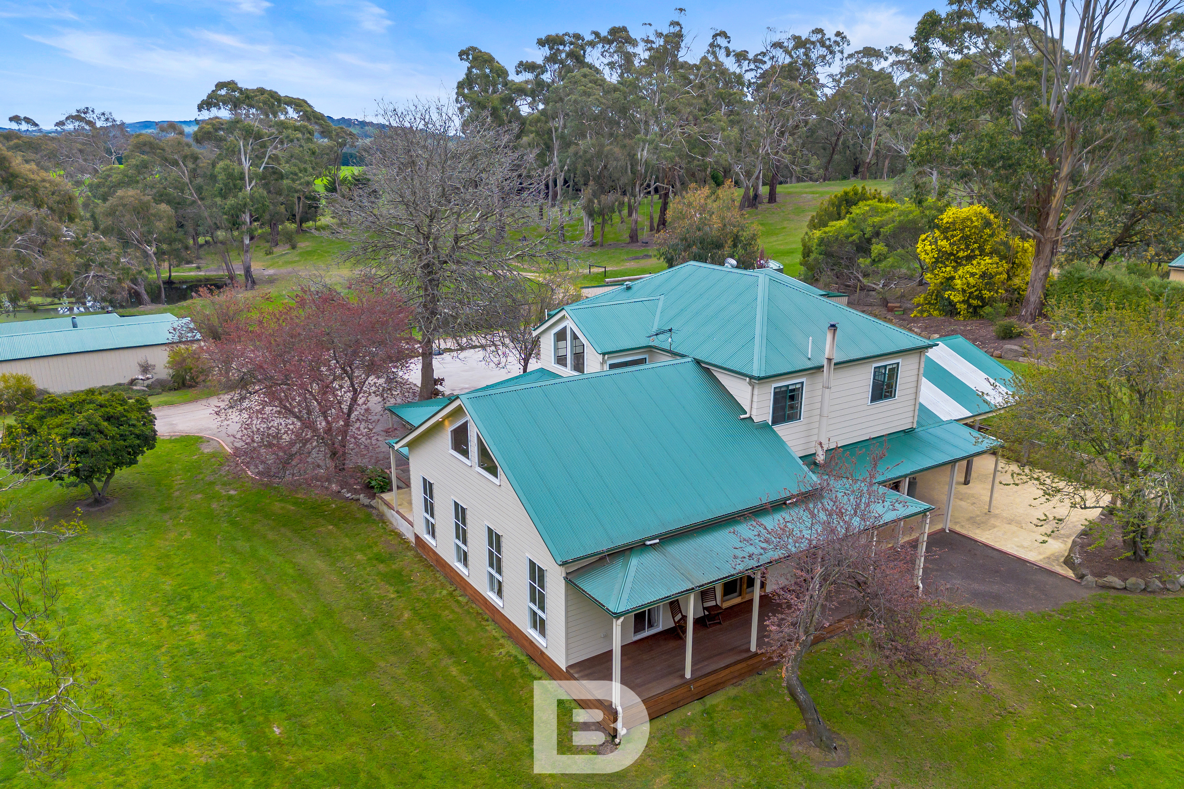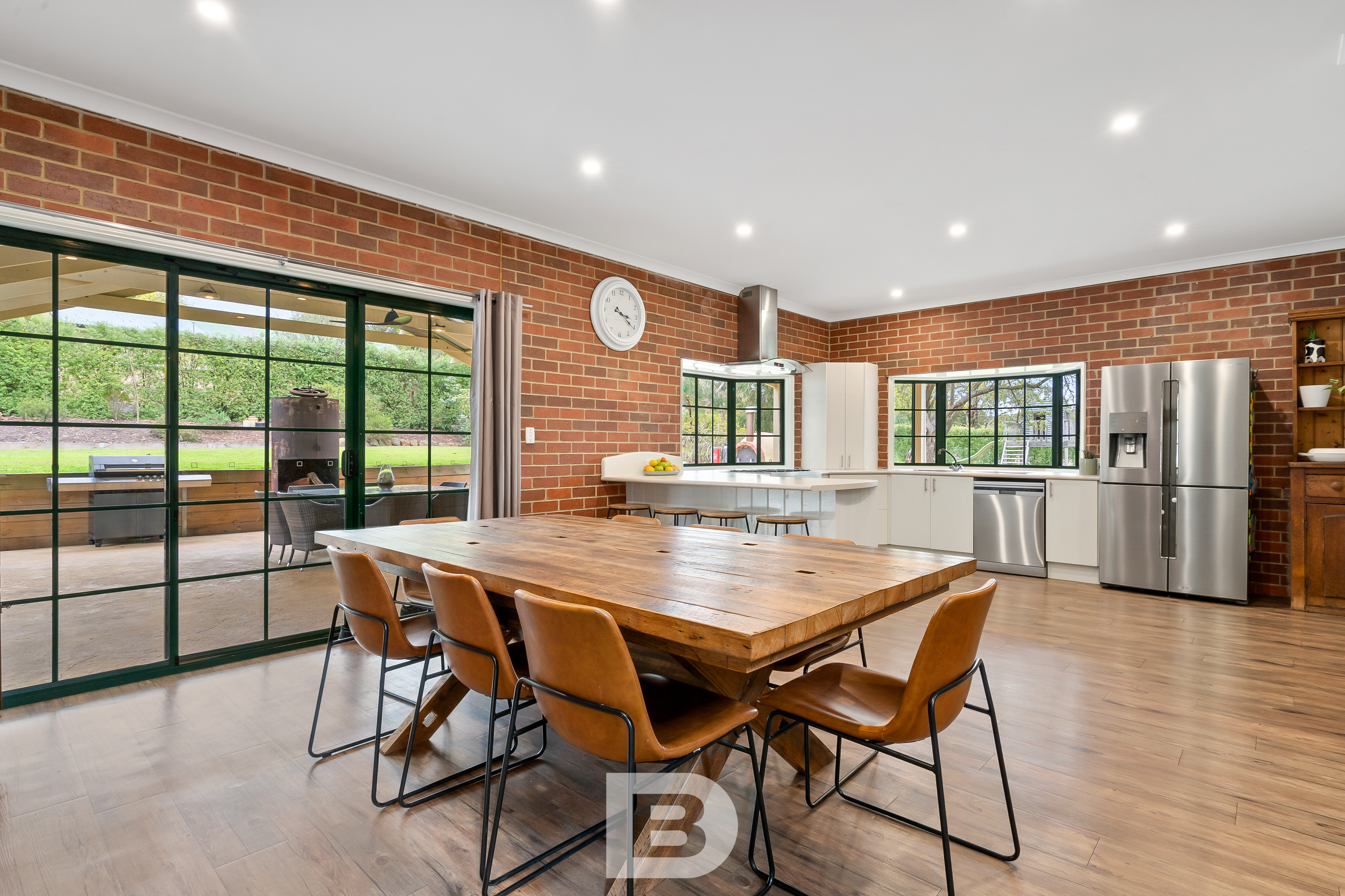 Wrap-around verandahs and colonial-style charm introduce a welcoming home on a generous 3.75-acre (approx.) parcel of land framed by established gardens and a free-flowing floorplan combining generous indoor living with expansive outdoor entertaining zones. Soaring raked ceilings, dado walls and exposed brick accents highlight a family-friendly floorplan from the onset. With generous living and dining stretching the breadth of the home, there is ample room for the largest family celebrations, no matter what time of year. Toasty warm in winter from superior hydronic heating, the home is cool and breezy in the summer courtesy of the generous verandahs and sliding doors, allowing all to enjoy the massive, north-facing covered alfresco entertaining space fit with inbuilt pizza oven.