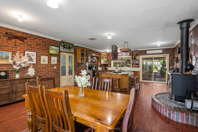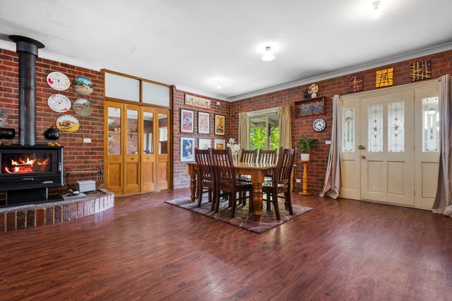 Set on just under an acre in the sought-after township of Newham, this spacious four-bedroom home was built with care by a local builder for his own family. Constructed with solid double brick, this residence is designed for both enduring quality and family comfort. At the heart of the home, the open-plan kitchen and dining area features a unique circular island bench with a cooktop and a large walk-in pantry, creating a welcoming, functional space. Double doors lead to an expansive family room with a corner bar and direct access to a generous lounge, perfect for large gatherings. A freestanding slow combustion fireplace warms the living areas, providing cozy comfort in the colder months.
