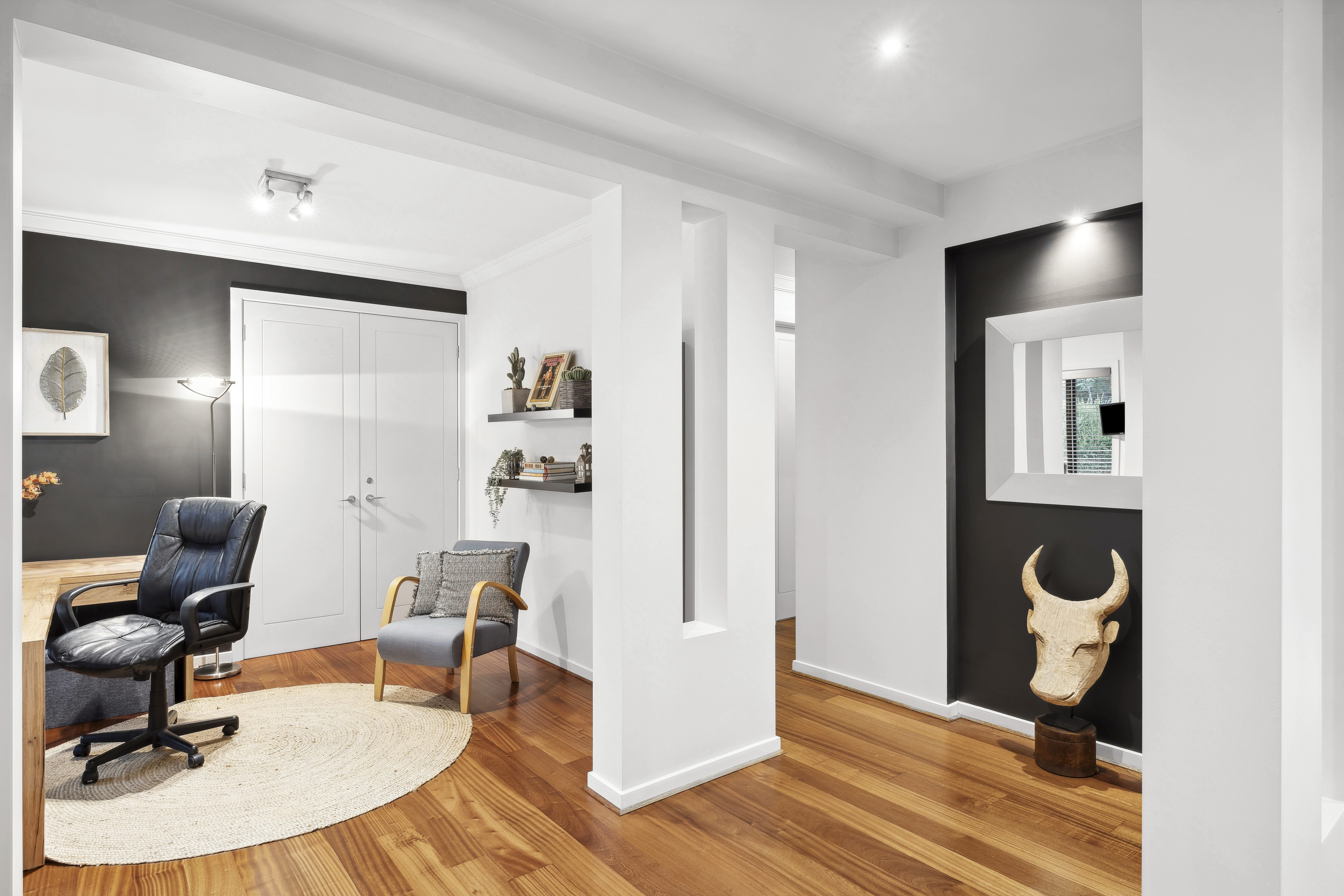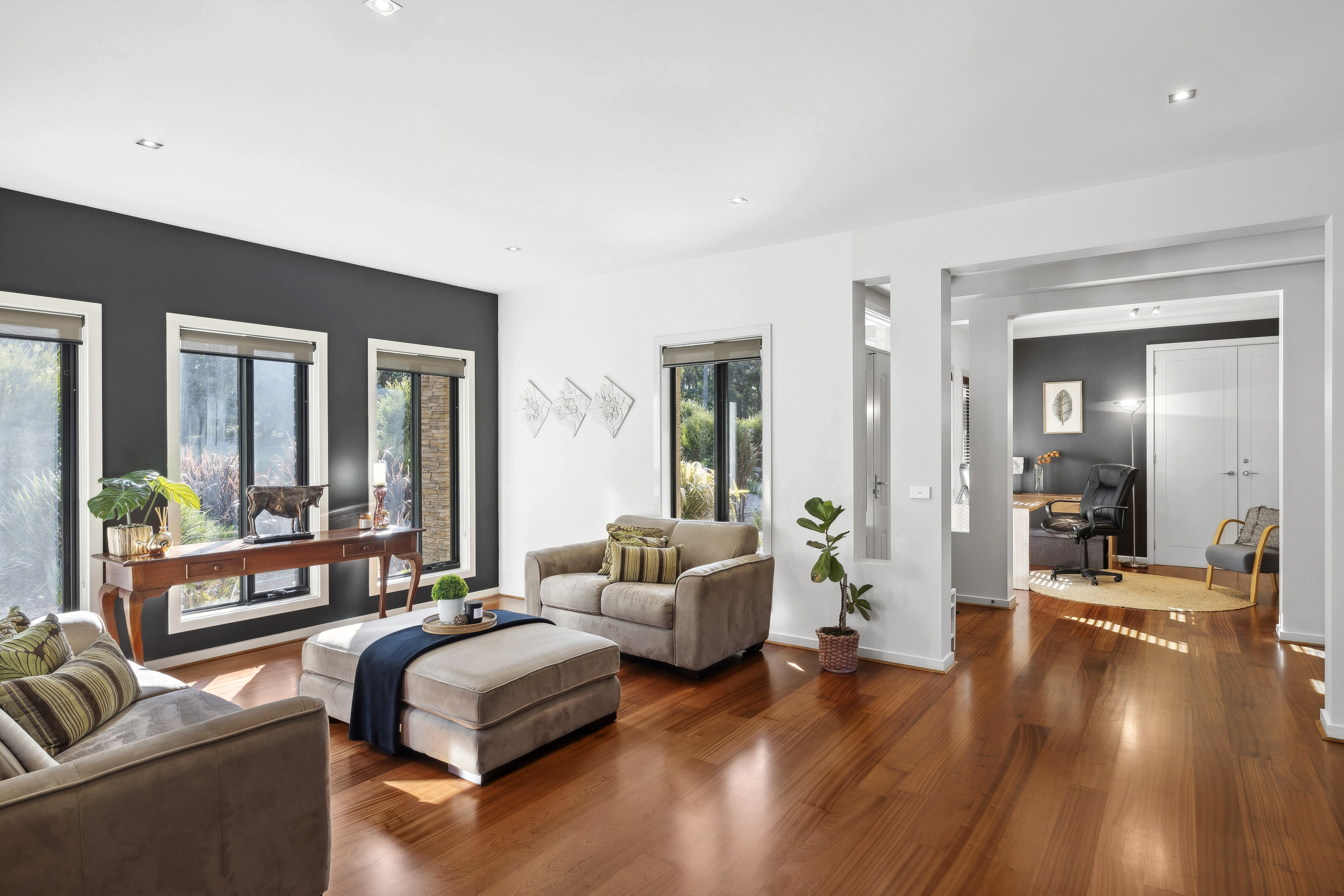 The main bedroom is a private retreat located at the opposite end of the home. It includes a spacious walk-in robe and a modern ensuite bathroom, providing a serene escape to relax and unwind. Additional features include double-glazed windows throughout, high ceilings, heat transfer system & 2 split systems throughout, hardwood timber floors, a separate study and a charming wood fire situated at the core of this home.