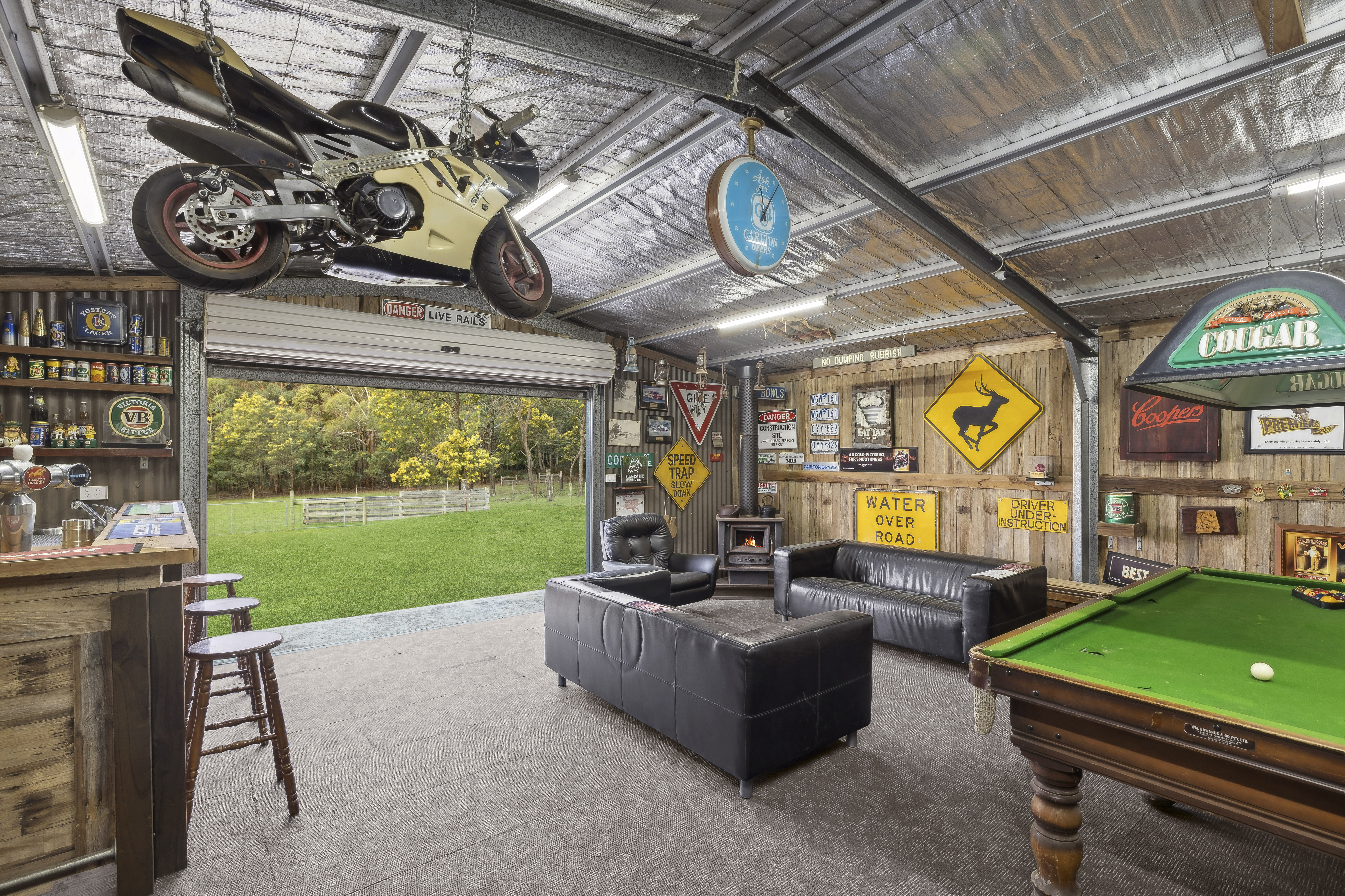 Outside, you'll find a wealth of amenities designed for ultimate relaxation and entertainment. Enjoy sunny days by the pool, challenge friends to a game on the basketball court, or gather around the fire pit set within a beautiful timber arbour for cozy evenings. The outdoor undercover entertaining space, full sized wood fire pizza fire and separate man cave with bar, wood fire, and workshop further enhance the home's appeal. The property also includes three paddocks suitable for livestock or horses, ensuring a perfect blend of leisure and practicality.
